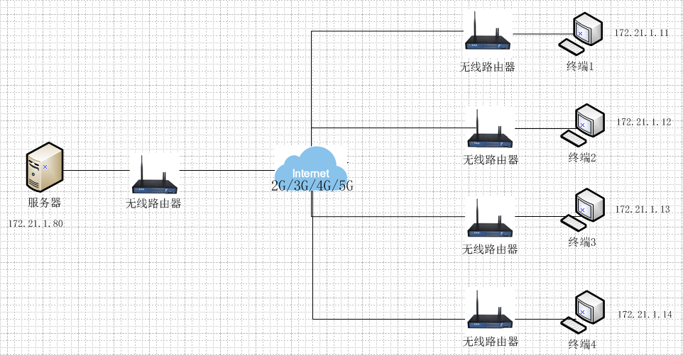 通过4G/5G无线网络方式实现不同地区的终端设备与服务器实现互通,并且本端与终端设备在同一子网下,实现二层网络通信。